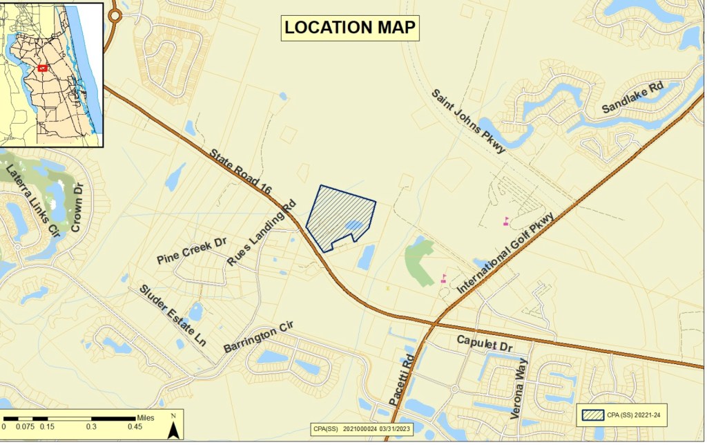 Agenda Items 4 & 5 are The Cottages at St. Johns. This is a proposed development of 232 residential units on SR 16 just west of International Golf Parkway. Interestingly this would be contained within a rental community, a growing trend across the country. At the PZA meeting review, concerns were raised about lack of infrastructure, road, ad school capacity. This was approved with a 4-2 vote at the PZA with much debate about compatibility and infrastructure. We can expect this to be a lengthy discussion at the BOCC, as well.