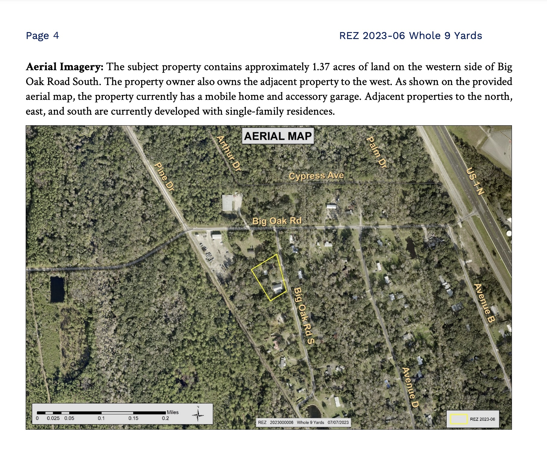 Whole 9 Yards. Request to rezone approximately 1.37 acres of land from Open Rural (OR) to Industrial Warehousing (IW), located at 5285 Big Oak Road S. This is property located in the Airport District.
