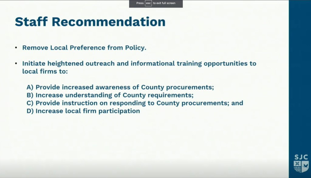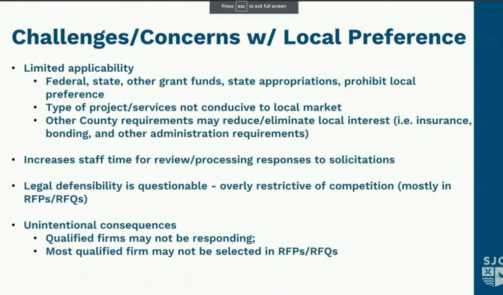 Regular Agenda Item 10 – Discussion on Local Preference in SJC Purchasing Policy