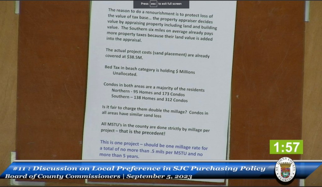 Public Comment included support for creating 1 MSTU with emphasis that this is for one Ponte Vedra Beach and one community.