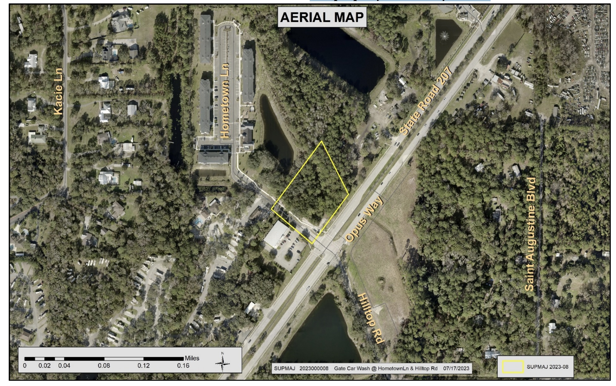 “A request for a Special Use Permit to allow for a Car Wash Facility in Commercial General (CG) zoning, pursuant to Section 2.03.50 of the Land Development Code, located at the intersection of Hometown Lane and State Road 207.”