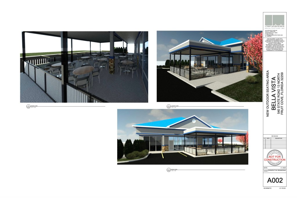 Agenda Item 3 is in District 1, on State Route 13N. This is a request for a Special Use Permit to 1) allow sales and consumption of alcoholic beverages and 2) to allow Outdoor Seating at the Bella Vista Restaurant in Fruit Cove.