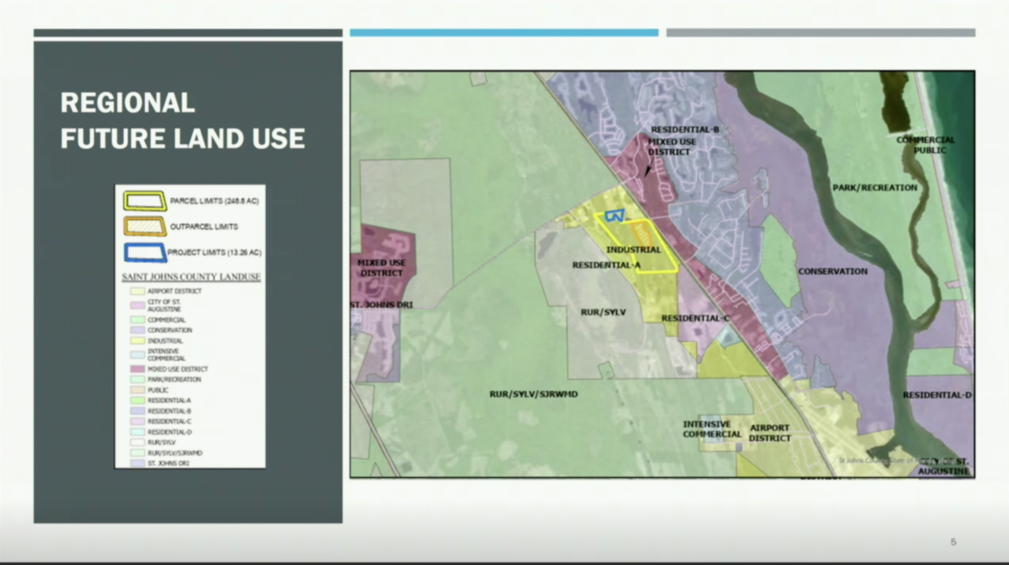 Agenda Item 5 – St. Marks Industrial – This request is to rezone 13.26 acres of land from Open Rural to Industrial Warehousing. It was approved by the PZA 5-0. The parcel is designated Industrial on the Future Land Use Map.