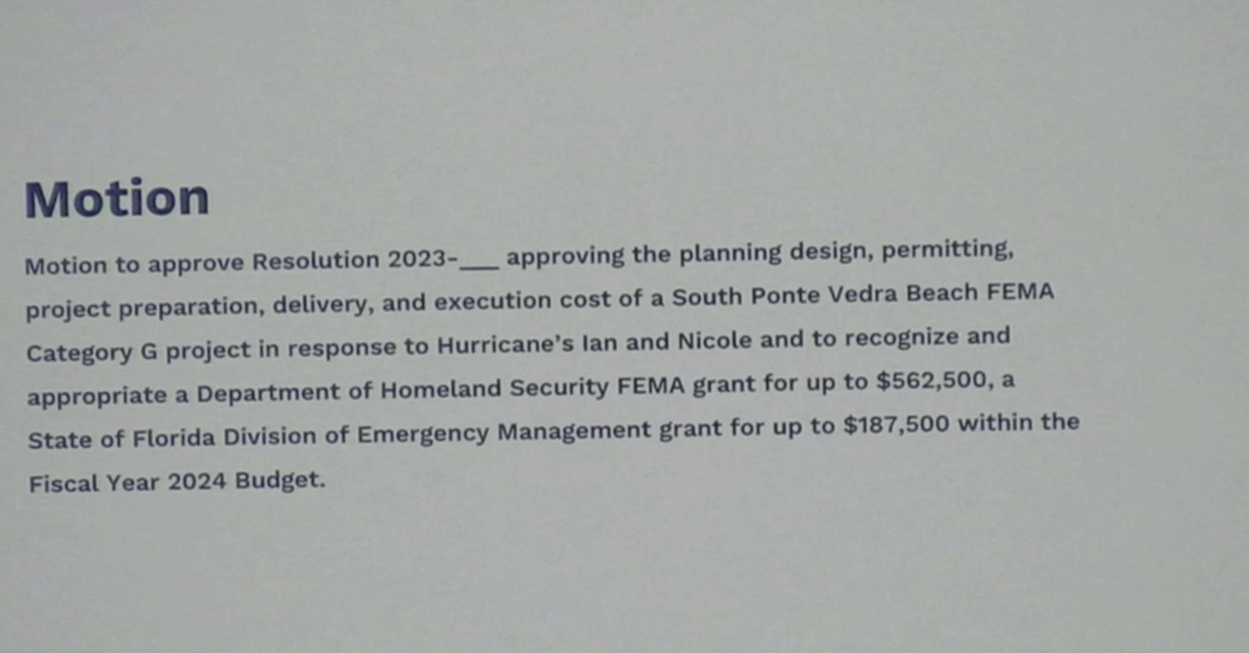 Agenda Item 7 – FEMA Public Assistance for Hurricanes Ian and Nicole, specifically South Ponte Vedra Beach.