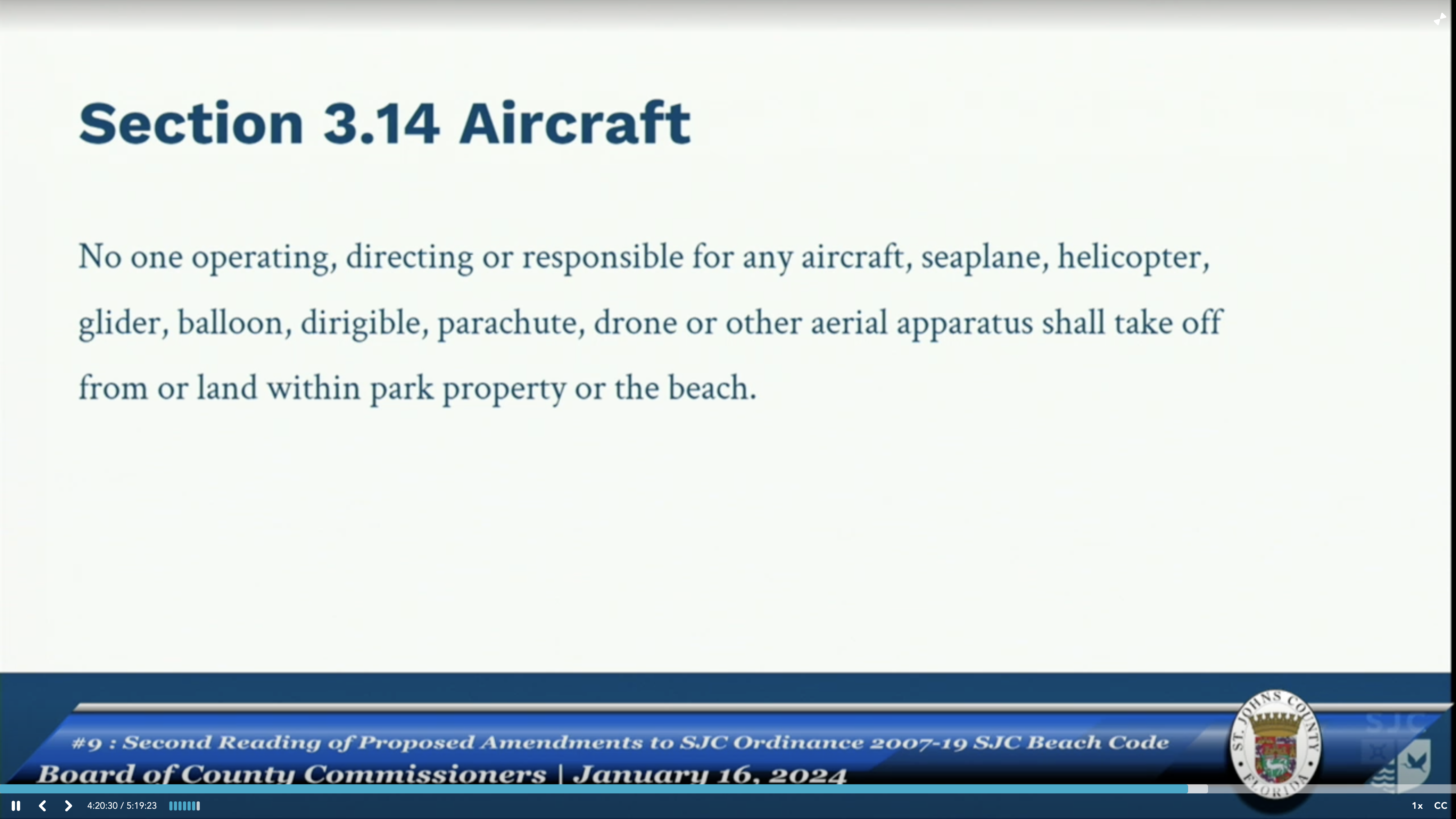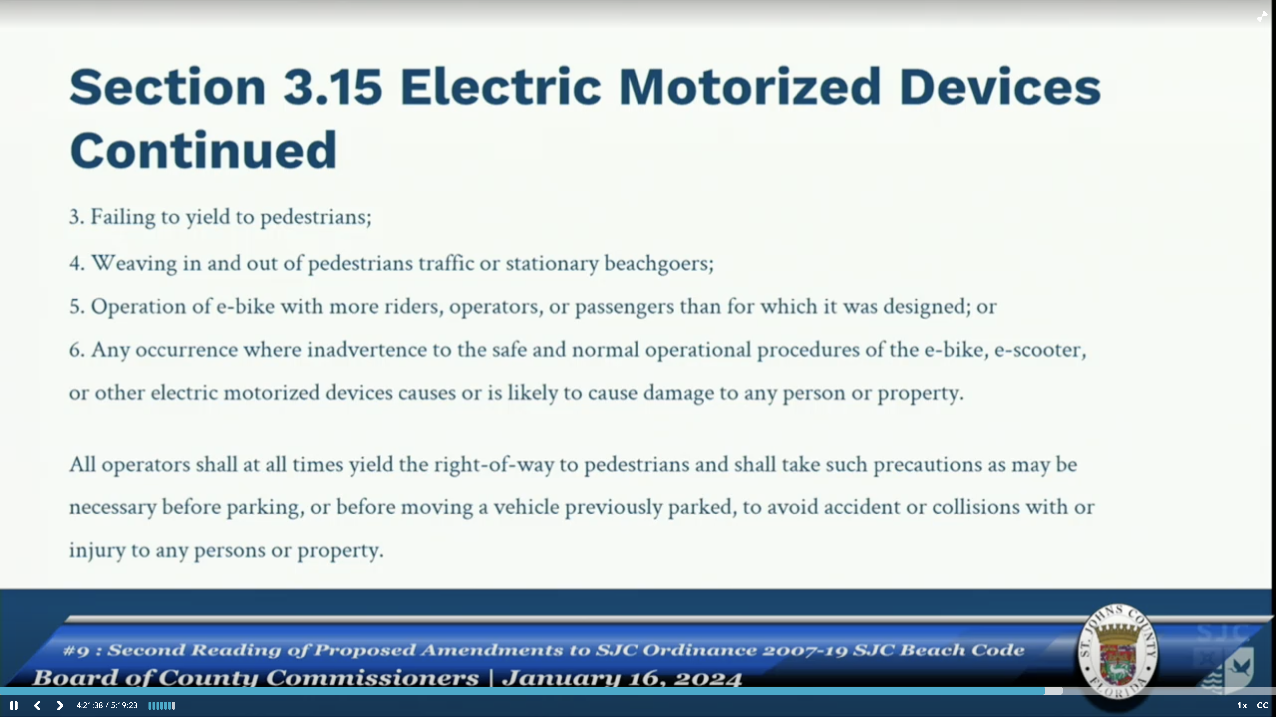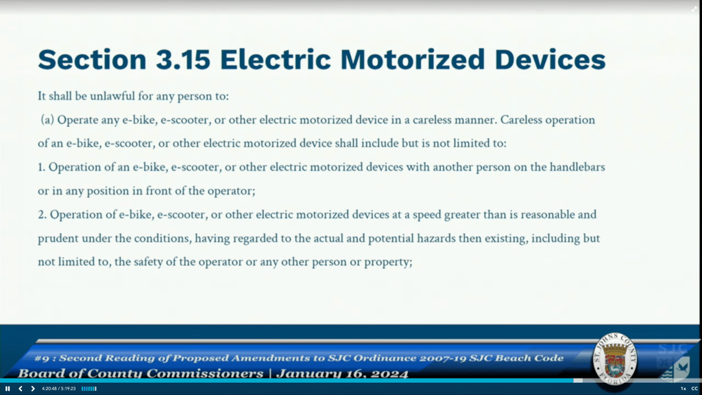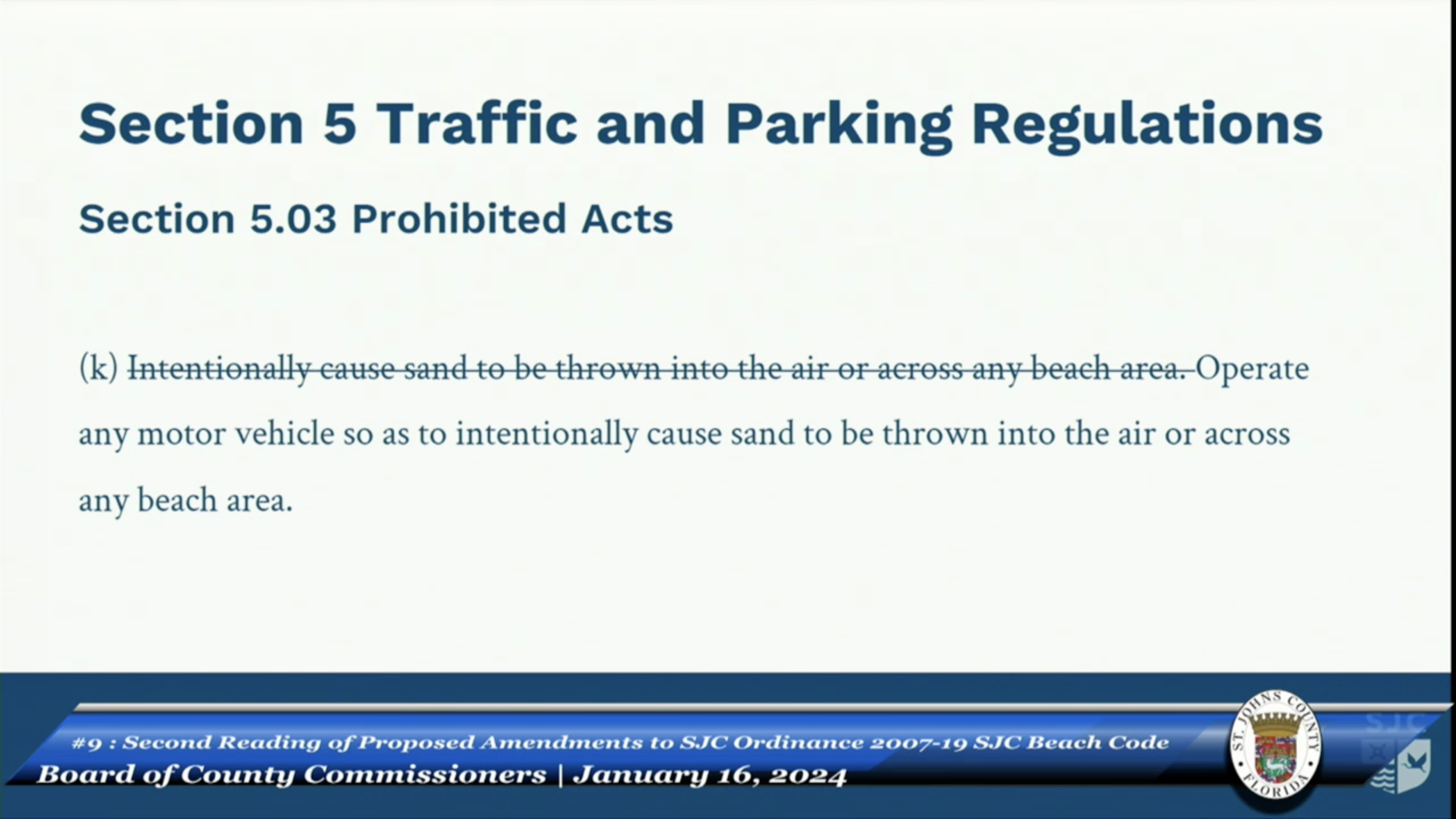 Agenda Item 9 – Second Reading of Proposed Amendments to St. Johns county Ordinance – Beach Code