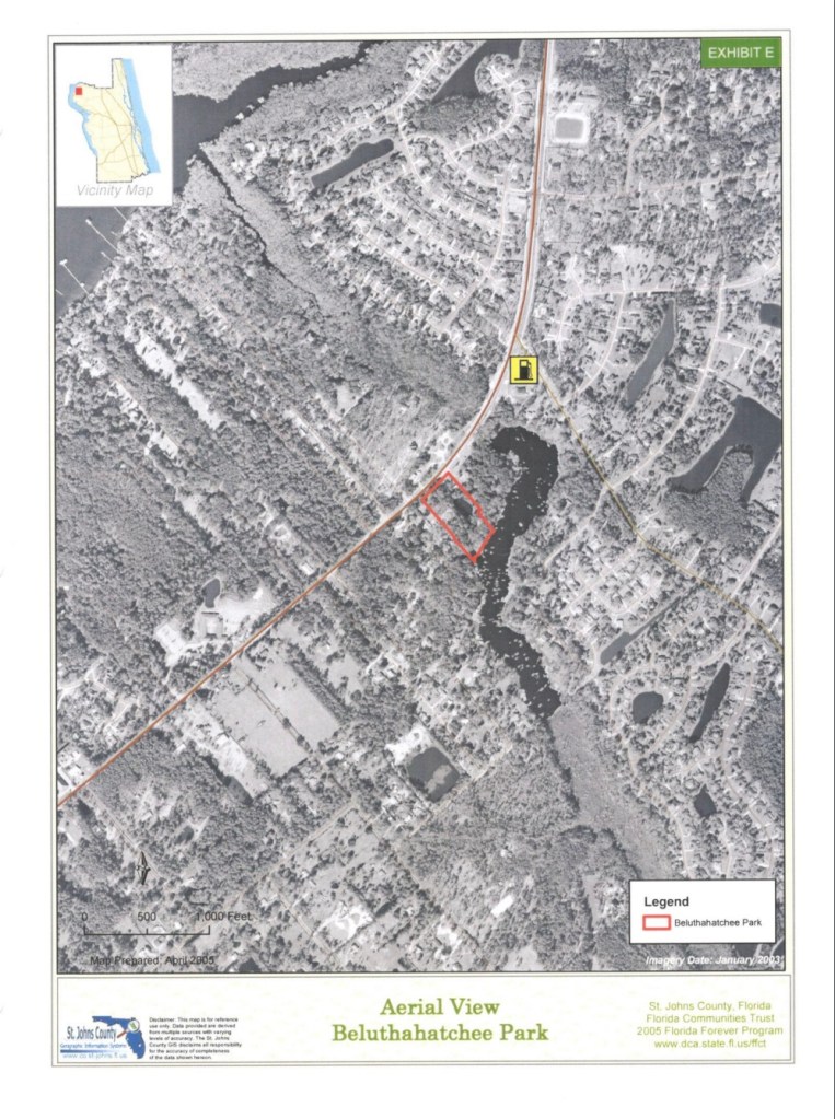 “The National Register of Historic Places is the official list of the Nation’s historic places worthy of preservation. Authorized by the National Historic Preservation Act of 1966, the National Park Service’s National Register of Historic Places is part of a national program to coordinate and support public and private efforts to identify, evaluate, and protect America’s historic and archeological resources. Beluthahatchee Park is located on the William Bartram Scenic Highway (SR 13) approximately one-fourth of a mile south of Roberts Road and approximately 200 feet north of Cricket Hollow Lane. Beluthahatchee Park originated out of the 10,000 acre land grant given to Francis Philip Fatio in 1774. This land grant created the Switzerland community today located in St. Johns County, Florida. In 1945, George Wallace Kennedy, dammed Mill Creek that originally ran through the property to create Lake Beluthahatchee. His son, William Stetson Kennedy acquired the 50 acre property in 1948 and added a further 20 acres. Stetson Kennedy was an author, folklorist, labor and human rights activist, and environmentalist. He became highly involved in the Civil Rights Movement and marched with Dr. Martin Luther King in St. Augustine, FL. By the 1970s, Kennedy wanted to make Beluthahatchee is permanent home, building a more substantial house that replaced more primitive camp-style cabins on the property. This property is already designated as a St. Johns County Historic Landmark, a Florida State Historical Landmark, and a Literary Landmark.”