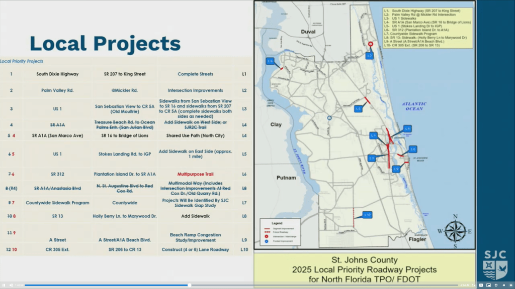 Agenda Item 3 – Growth Management Assistant Director of Transportation Dick D’Souza presented the 2025 Roadway and Transportation Alternatives list of Priority Projects (LOPP).