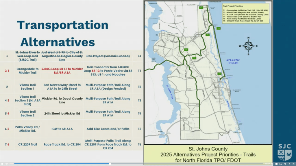 Trails and Greenways – Orangedale to Mickler Trail, River to Sea Loop I-95 Overpass, and the North A1a Trail to the Duval County Line