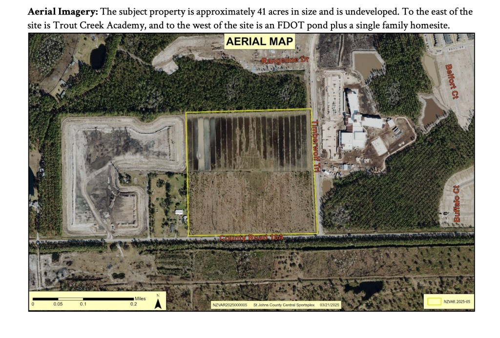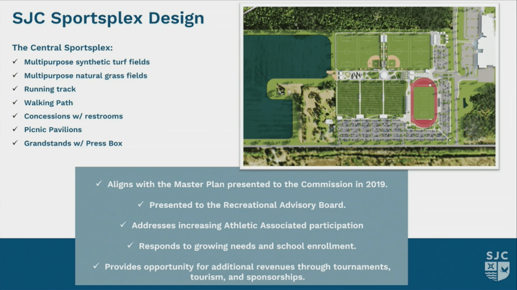 Agenda Item 5 – SJC Central Sportsplex – this request is for a Non-Zoning Variance to allow for a County Park to utilize Scenic Edge standards, to allow for reduced performance standards in a portion of the Development Edge, and to allow for overflow parking within the scenic Edge. The site is at the corner of County Road 16A and Timberwolf Trail. Approved unanimously.