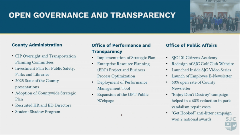 The first set of slides is from the County Administrator’s Recap of key accomplishments related to the County’s budget for the past year.