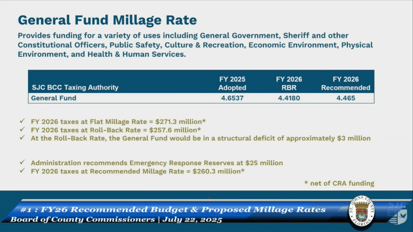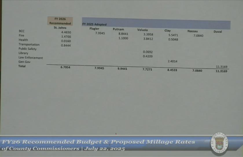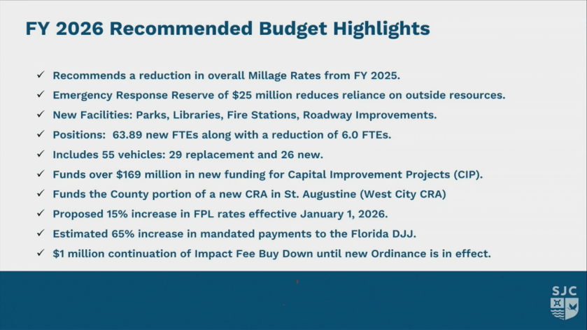 You can review the full Budget Details at this link: St Johns County 2026 Budget Recommendations