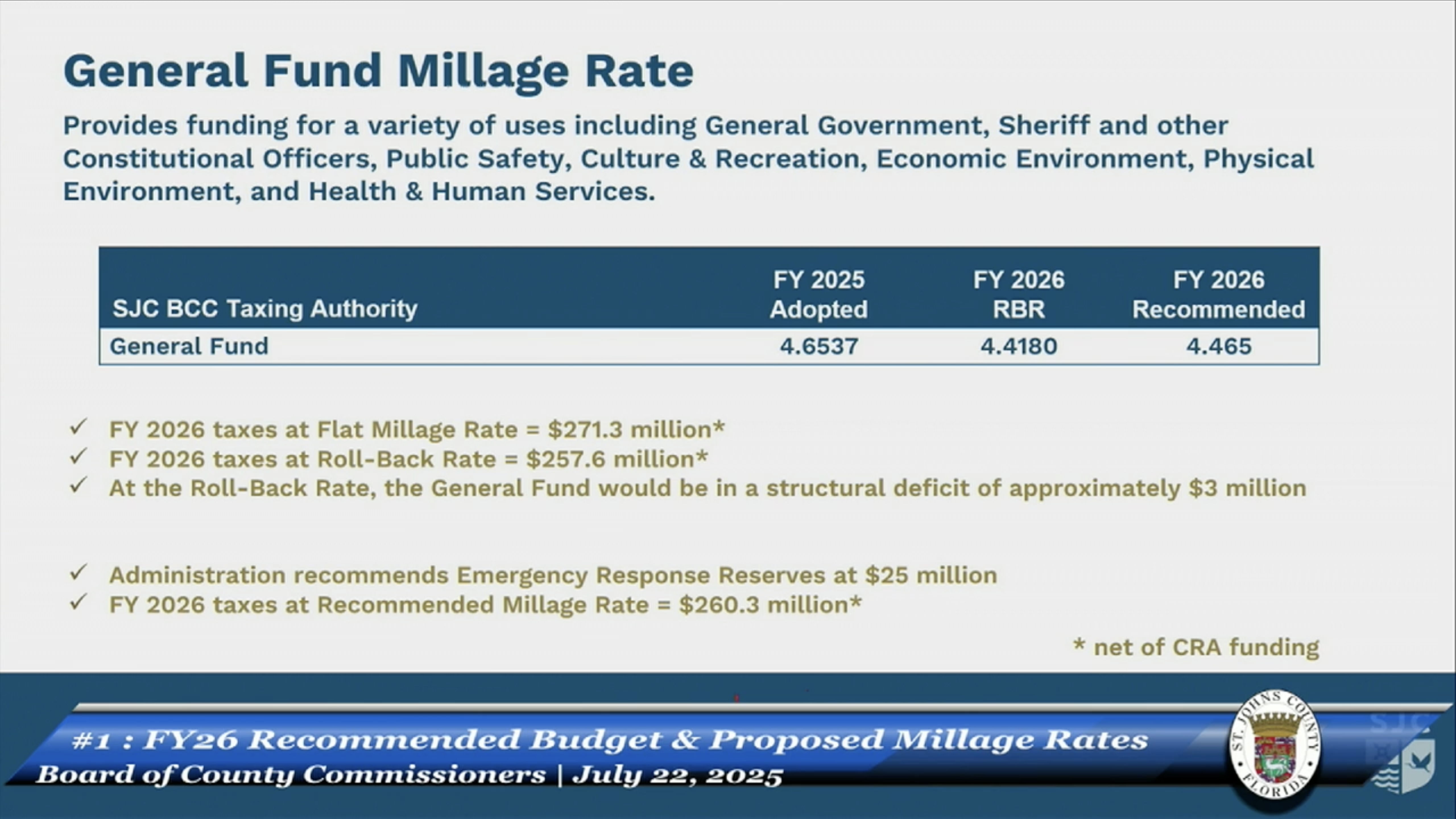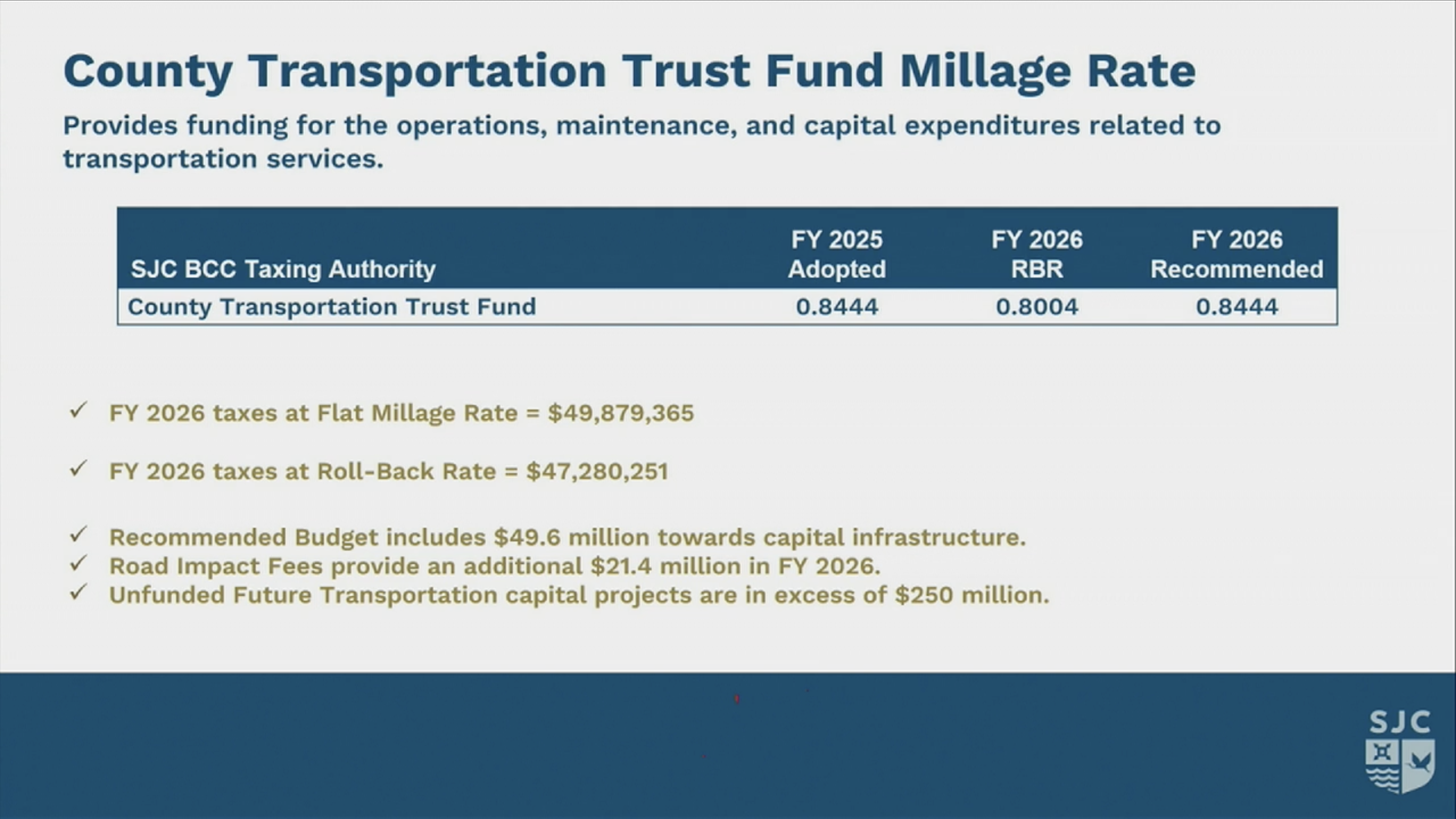 You can review the full Budget Details at this link: St Johns County 2026 Budget Recommendations