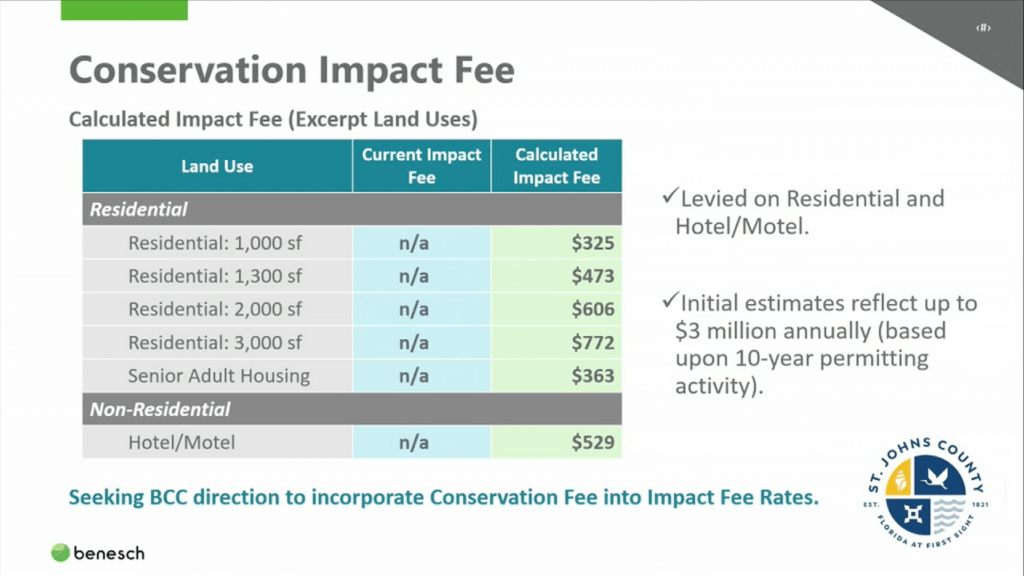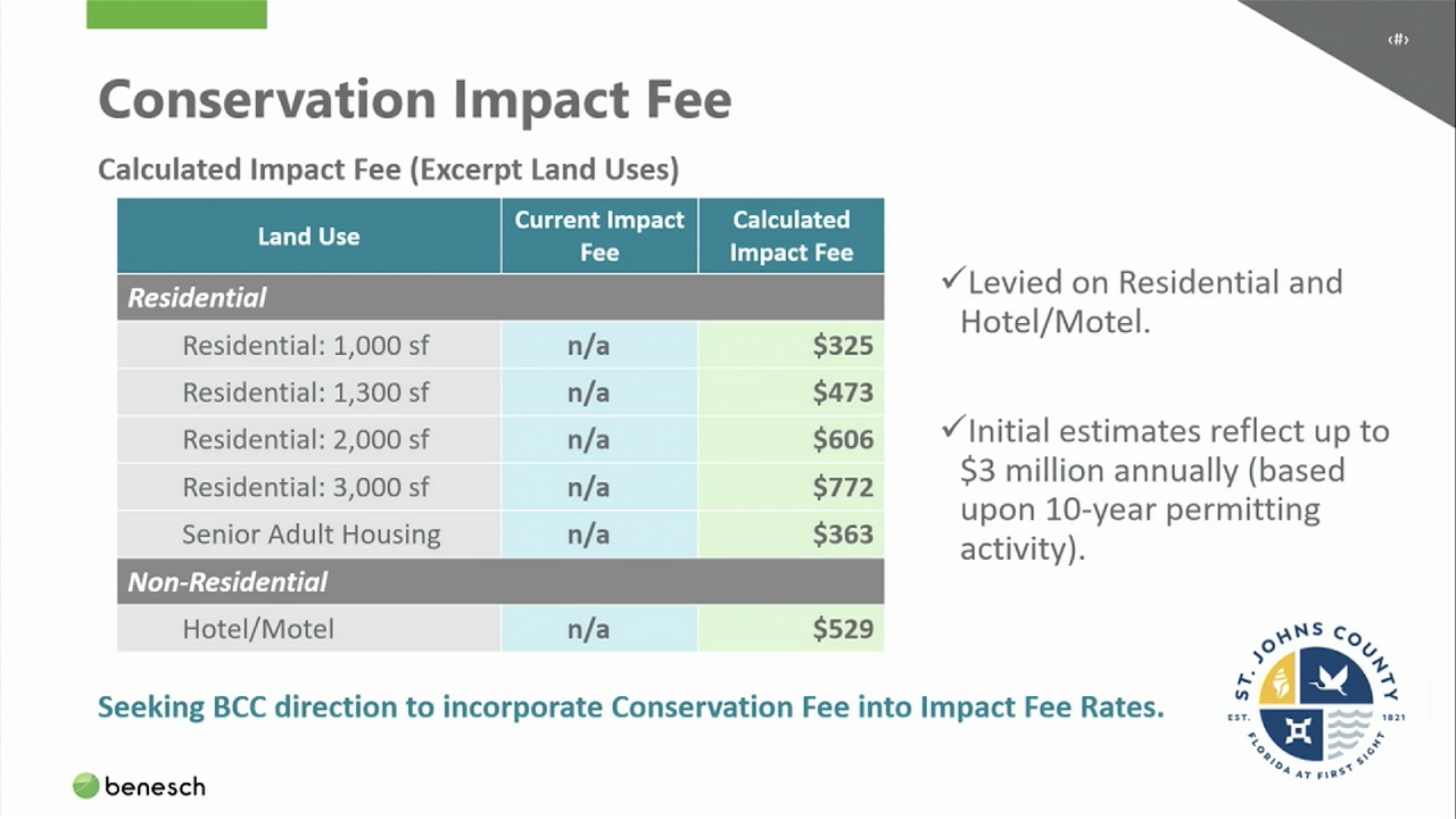 There is a new Conservation Impact Fee that was proposed. All the Commissioners were in favor of the Conservation Impact Fee. However, there are still questions lingering. They wanted to understand these questions before raising the fees to the maximum allowed under state law.