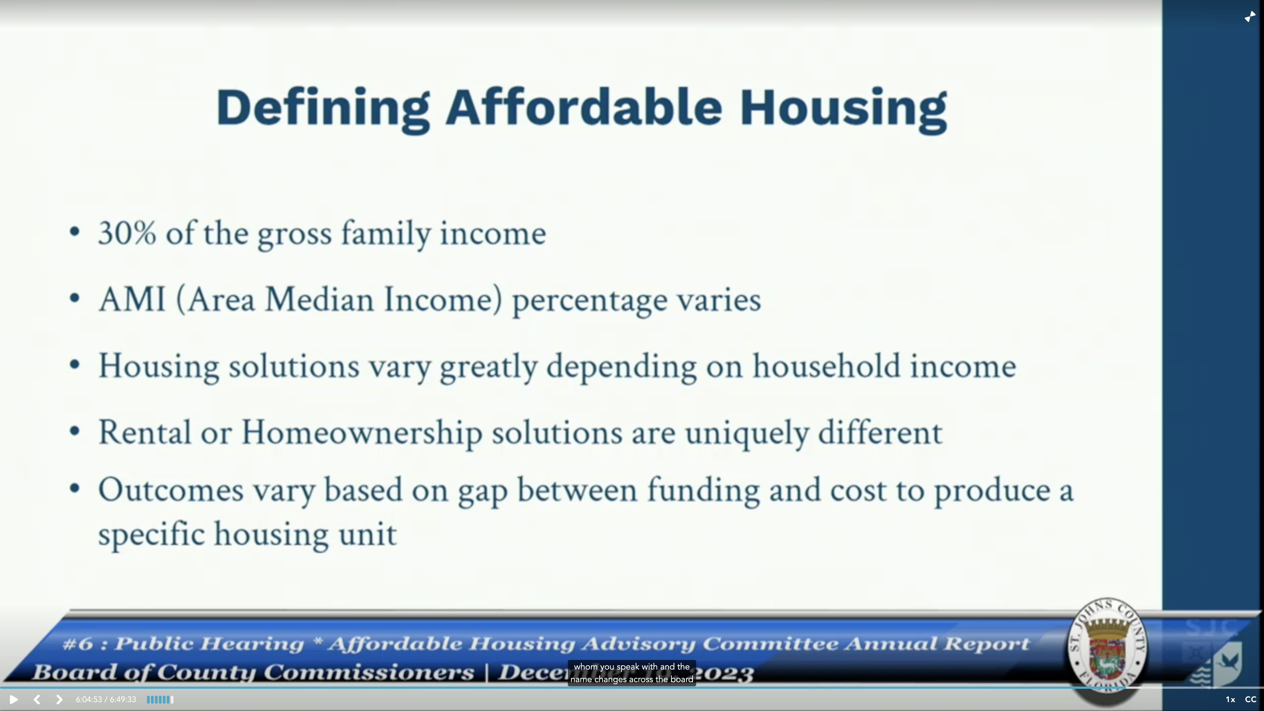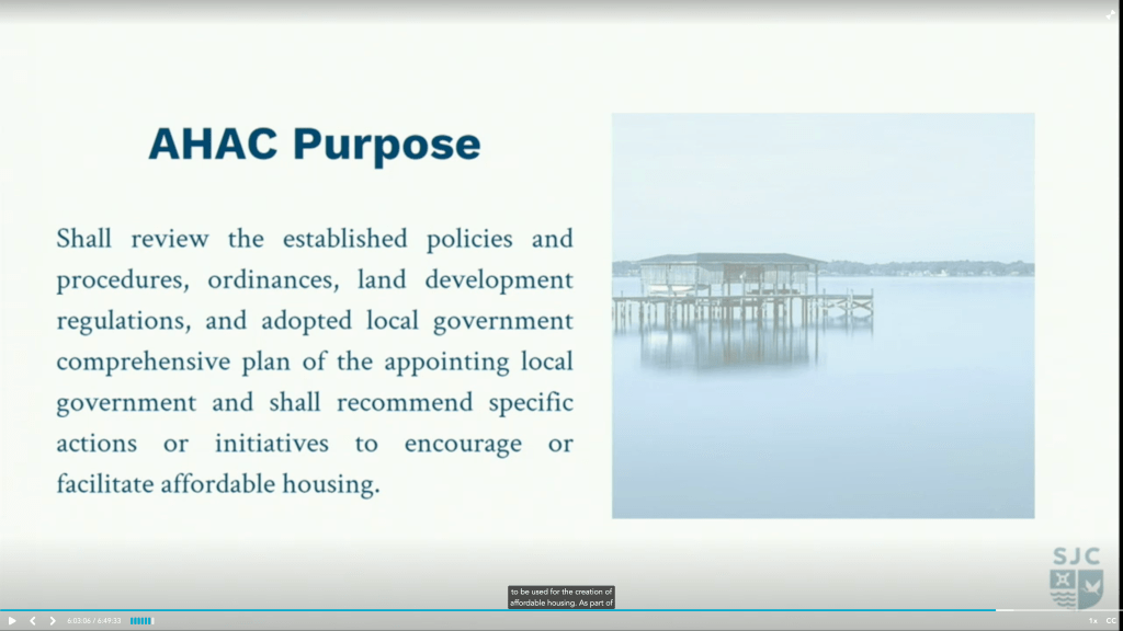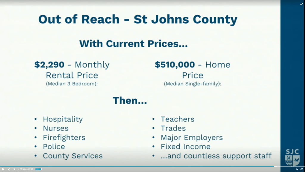This is the required annual update from the AHAC. This includes a current state view and recommendations on how to address the growing problem of affordable housing in St. Johns County for not only low income families but our “missing middle.”