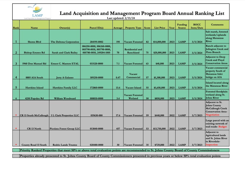 Agenda Item 2 was the Annual Property Ranking List from the Land Acquisition and Management Program (LAMP) Conservation Board.