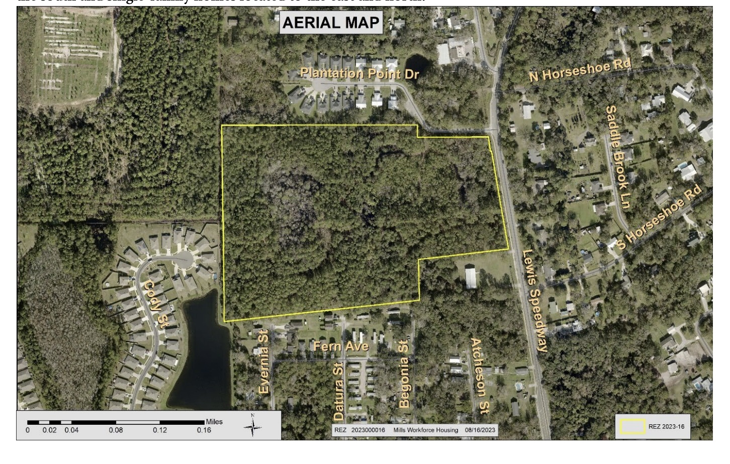 Agenda Item 4 was a Rezoning request for the Mills Workforce Housing on Lewis Speedway. The request is to rezone ~24 acres of land for a total of 110 Workforce Housing Units. The project will be built by KB Homes and their representative spoke about the need for more “starter homes” in St. Johns County.